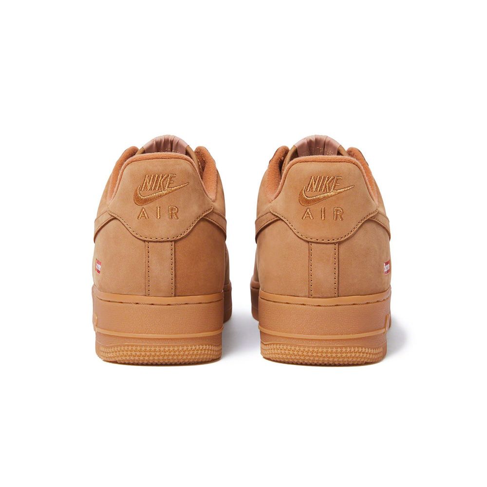 Drawing inspiration from classic work boots, the Nike Air Force 1 Low SP Supreme Wheat features a Flax Durabuck upper with Supreme Box Logo insignias on the lateral heels. At the base, a matching Flax Air sole completes the design.