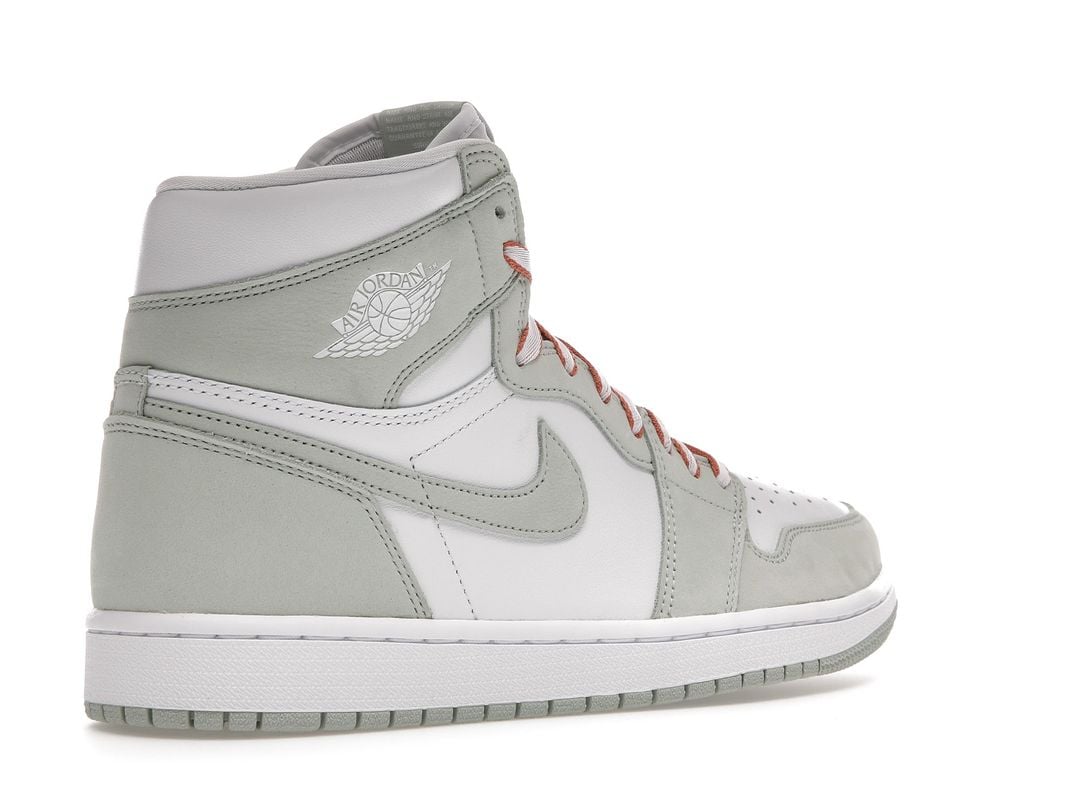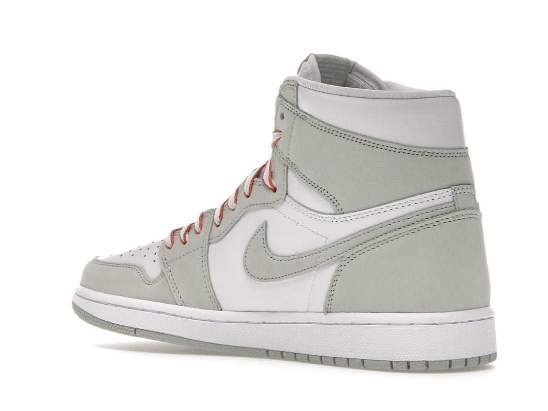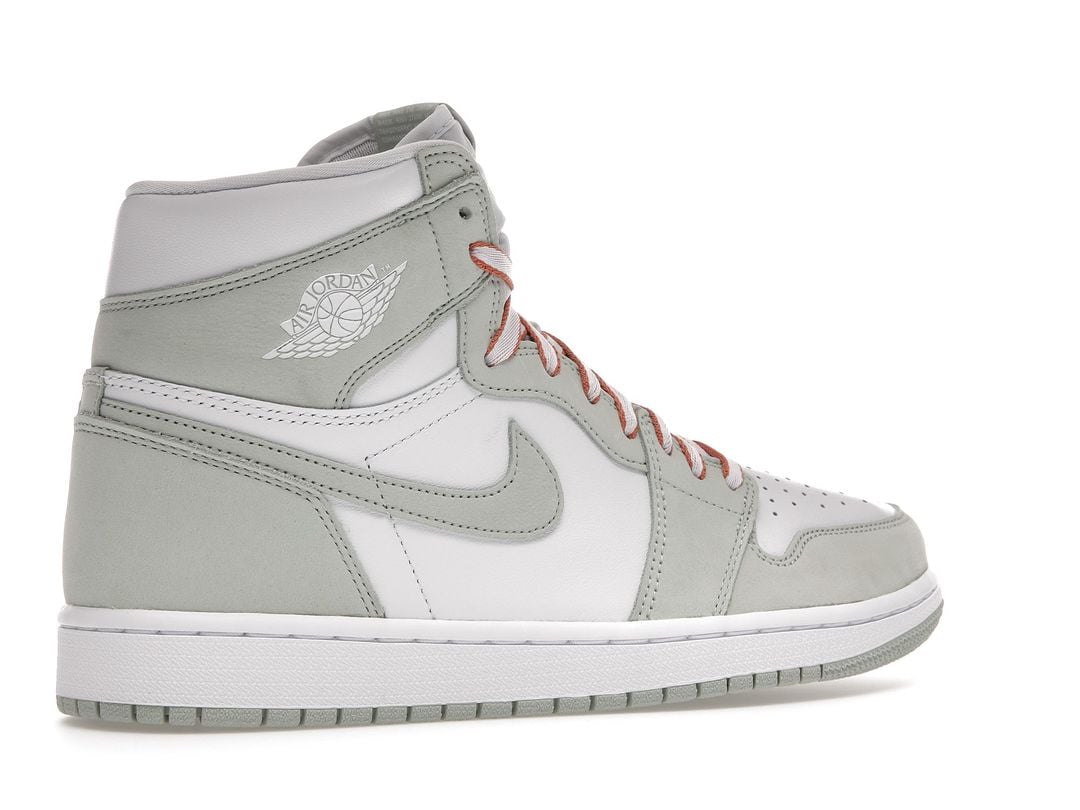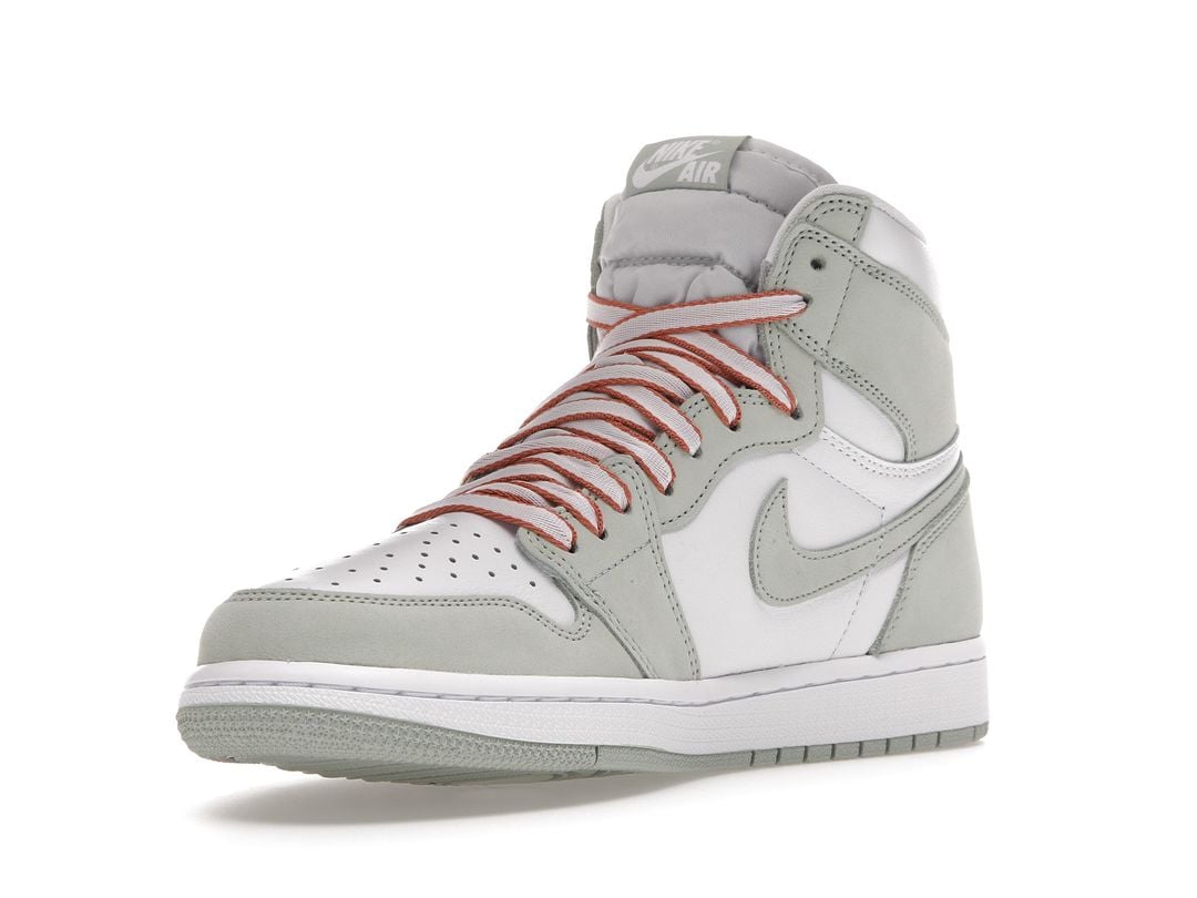 The women’s Air Jordan 1 Retro High OG ‘Seafoam’ delivers a subtle two-tone colorway of the 1985 sneaker that started it all. The all-leather upper features a crisp white base with contrasting overlays in a soft green finish. The pastel hue is repeated on the sneaker’s branding elements, which include the signature Swoosh and Nike Air tongue tag. Contrasting color arrives via Healing Orange trim on the flat woven laces. The high-top is anchored by a durable rubber cupsole with encapsulated Air sole cushioning in the heel.