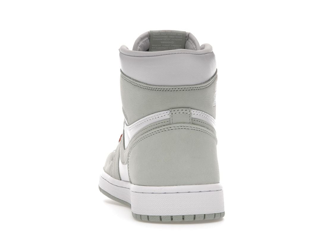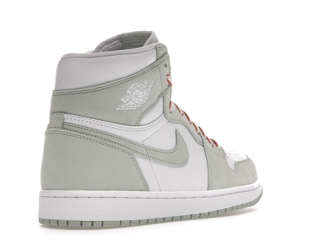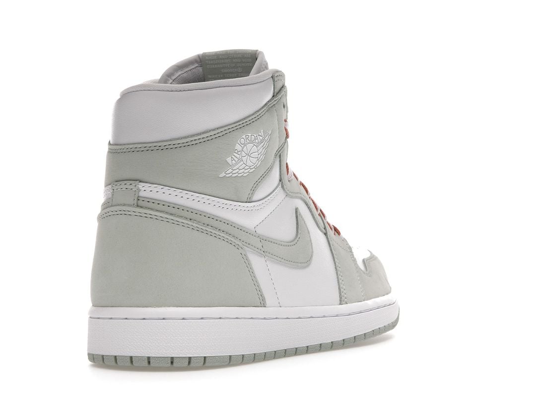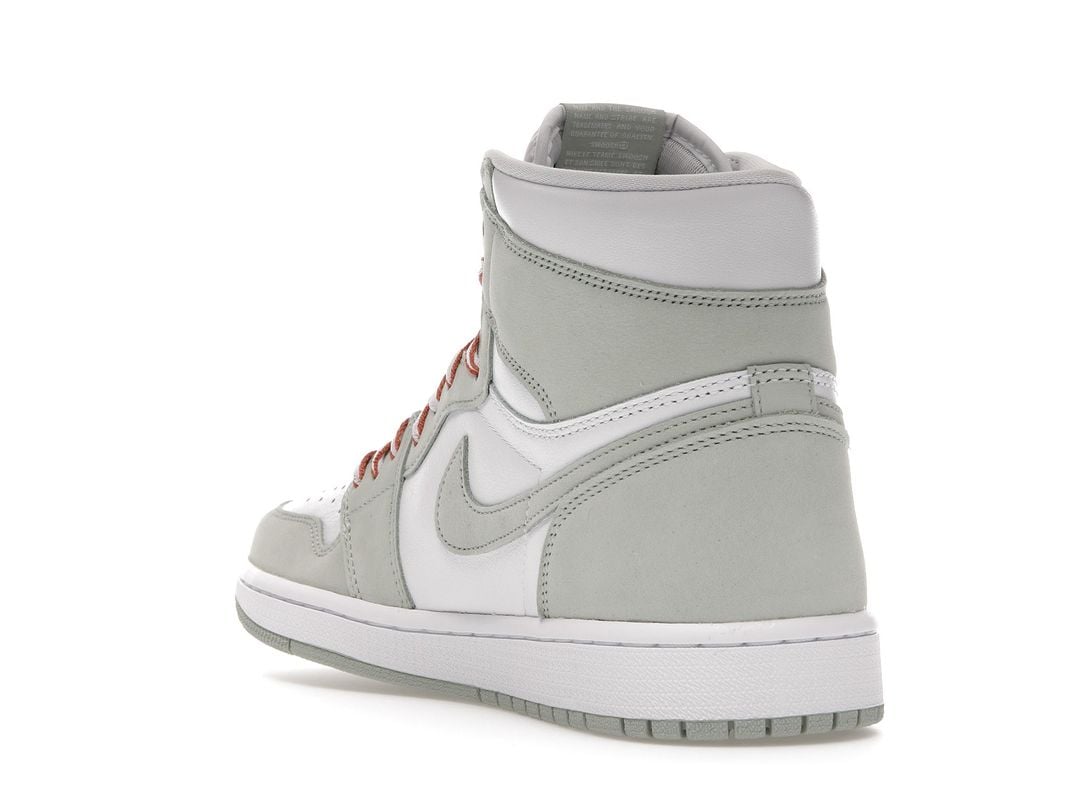The women’s Air Jordan 1 Retro High OG ‘Seafoam’ delivers a subtle two-tone colorway of the 1985 sneaker that started it all. The all-leather upper features a crisp white base with contrasting overlays in a soft green finish. The pastel hue is repeated on the sneaker’s branding elements, which include the signature Swoosh and Nike Air tongue tag. Contrasting color arrives via Healing Orange trim on the flat woven laces. The high-top is anchored by a durable rubber cupsole with encapsulated Air sole cushioning in the heel.
